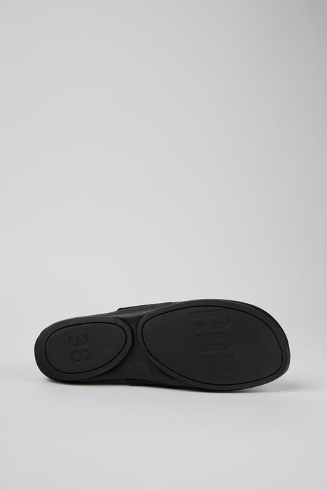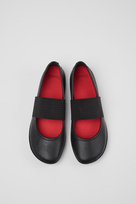 Black leather women's Mary Janes with EVA footbeds and rubber outsoles.