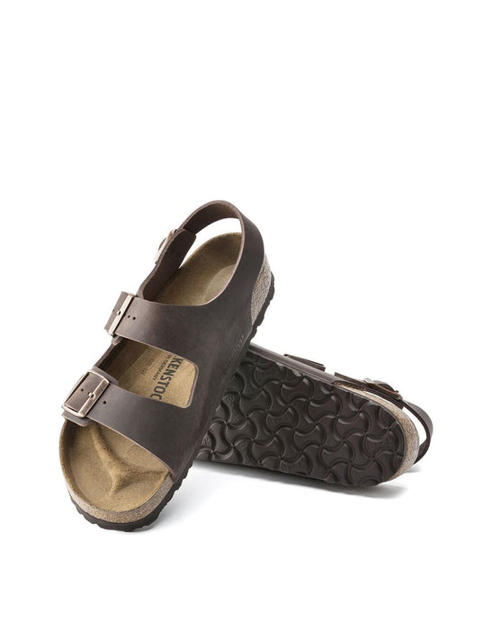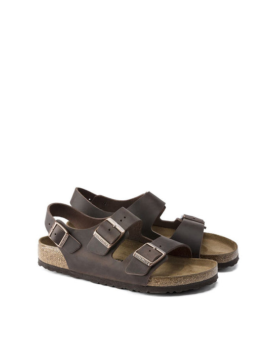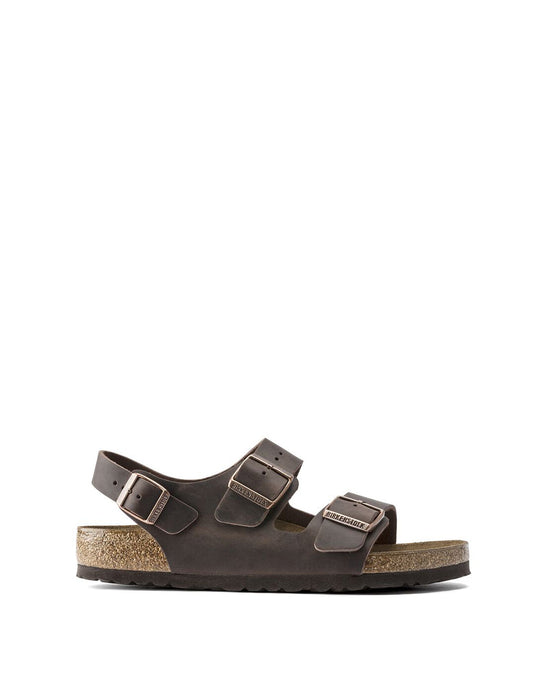 The Milano sandal adds an adjustable backstrap to its classic, two-strap design, giving you more security and a fit that's just right. Handcrafted for quality, oiled nubuck leather looks distinctly heritage, designed to age over time for a perfectly worn, one-of-a-kind look. Complete with classic BIRKENSTOCK design elements, like adjustable buckle closures and a contoured cork-latex footbed for the ultimate in support.