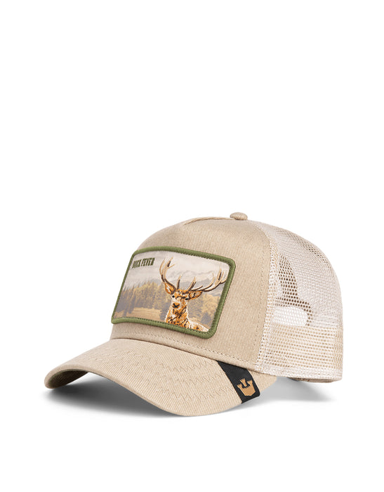 • That feeling when the world goes still, your pulse kicks up, and all that exists is the moment in front of you. It isn’t just about the chase—it’s about the thrill, the patience, the quiet intensity of knowing when to make your move. This cap captures that rush with a sharp-eyed buck standing tall against a misty mountain backdrop, staring straight through you. A rugged tan fabric and a weathered mesh back give it that broken-in, backwoods feel—like it’s been through a few early mornings and cold sunrises. Steady hands, sharp focus. Whether you’re tracking the trail or just playing the game, you know exactly what you’re after.